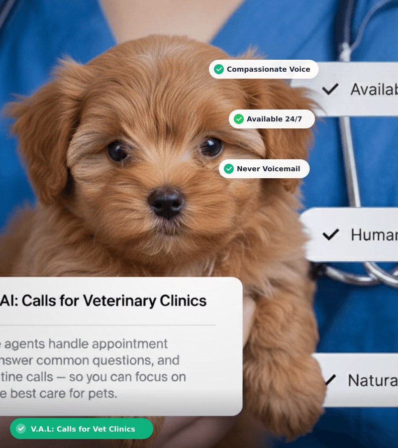 "Pet owners call us in their most emotional moments. V.A.L handles those calls with a level of compassion I didn't think AI could achieve. Our clients feel genuinely cared for, even at 2am."